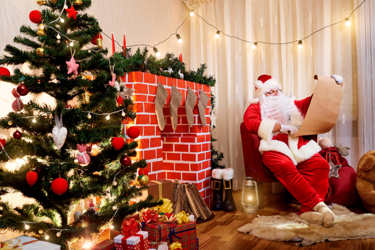 Главная » Мастерская Ключи к желаниям » Santa Claus in a Christmas list with a gift in the hands of the